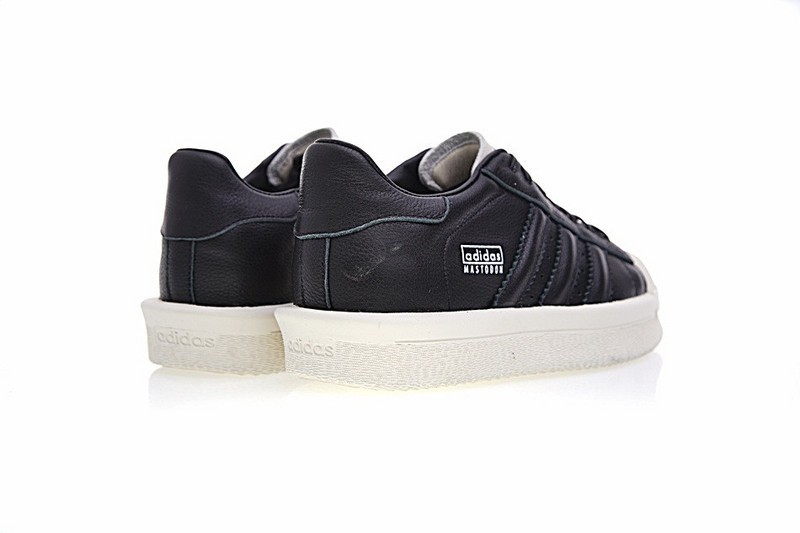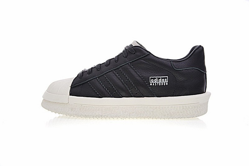 Die Mastodon Pro Modell Pearl zweifarbigen Premium-Leder-Sneakers von adidas by Rick Owens haben die Form der zeitlosen Superstar-Silhouette und verfügen über ein mittelhohes Knöchelhemd, ein erweitertes Werkzeugsystem und eine griffige Außensohle.