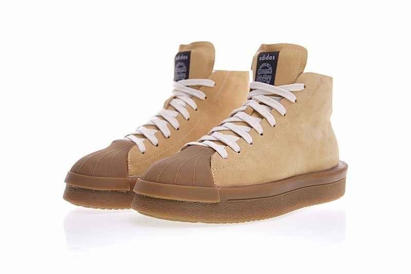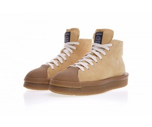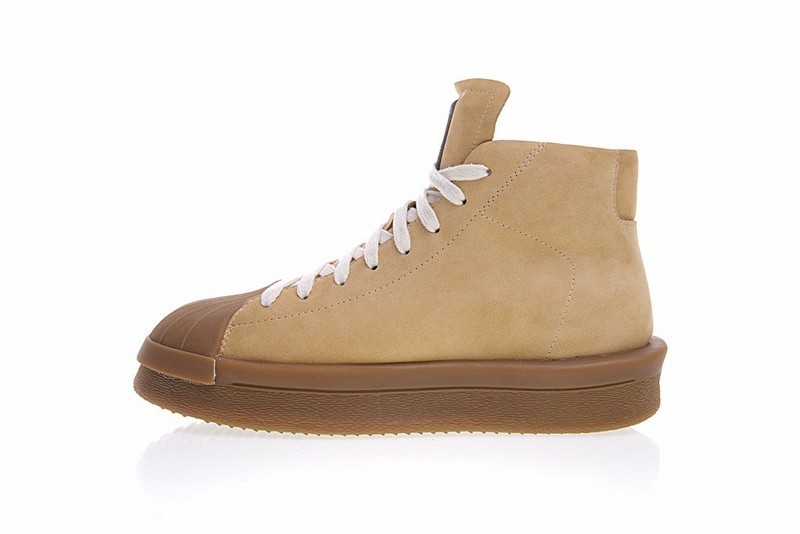Die Mastodon Pro Modell Pearl zweifarbigen Premium-Leder-Sneakers von adidas by Rick Owens haben die Form der zeitlosen Superstar-Silhouette und verfügen über ein mittelhohes Knöchelhemd, ein erweitertes Werkzeugsystem und eine griffige Außensohle.